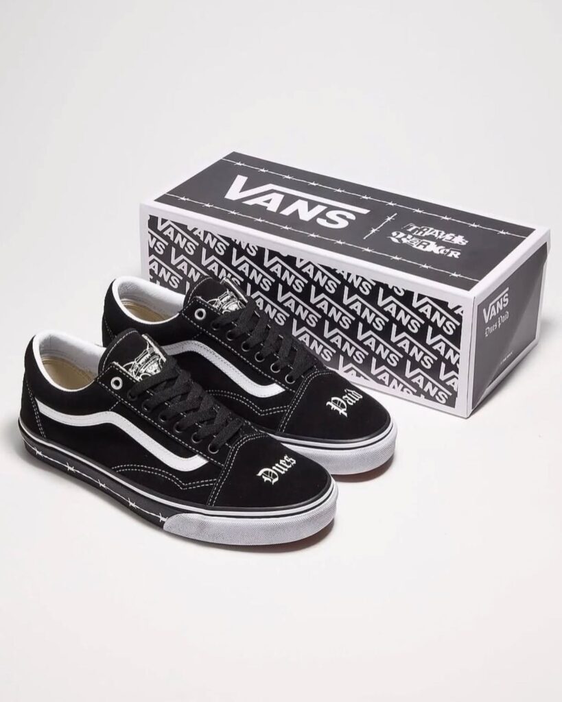 Vans x Travis Barker Old Skool, yang sering disebut sebagai edisi “Dues Paid”, adalah kolaborasi resmi antara Vans dan drummer Blink-182, Travis Barker, yang dirilis pada 23 Oktober 2025. Sepatu ini didesain secara personal oleh Barker dan menggabungkan elemen punk rock, skate, dan tato yang ikonik